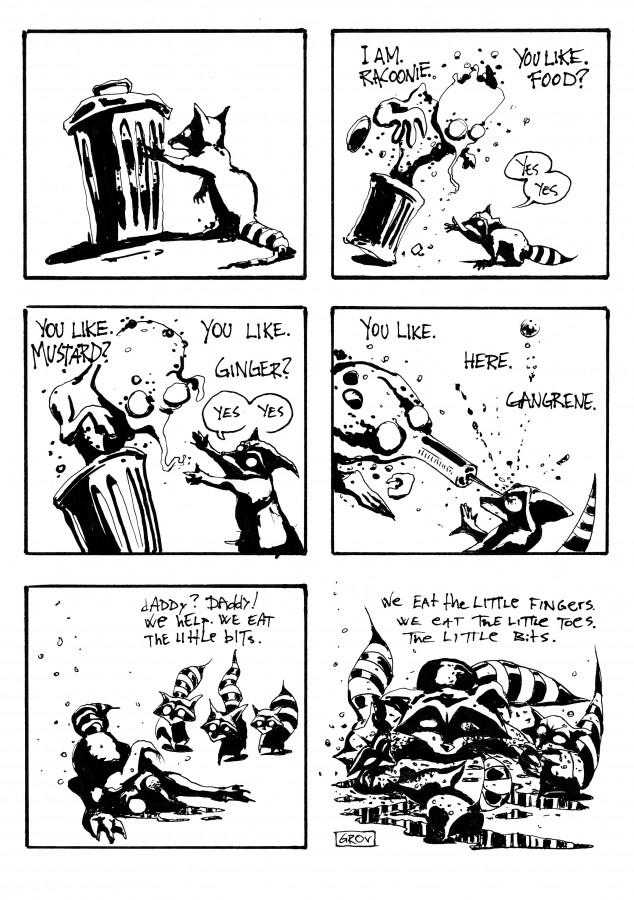 Posted on 21. October 20144. November 2014 by Tommy Grov Posted in Comics Tagged cannibalism, Comic, Existential, flies, Great War, Nightmare, Raccoons, Soldiers Leave a comment